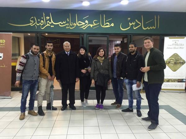 نظم قسم التسويق في كلية الاقتصاد والعلوم الاجتماعية ضمن فعالياته لهذا الفصل الثاني 2015/2016 زيارة الى خانة الوكالات وفندق سليم افندي وذلك ضمن انشطة مساق التسويق السياحي والفندقي باشراف الدكتور مصطفى الحاج علي بهدف التعرف على المقاصد السياحية والفندقية في مدينة نابلس