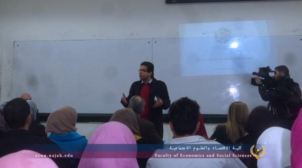 وافتتح اللقاء د. شاكر خليل رئيس قسم الاقتصاد مرحب بالحضور من المؤسسة الفلسطينية لضمان الودائع والحضور من الهيئة التدريسية والادارية في جامعة النجاح وطلبة الكلية، وقدم شرح توضيحي للحضور عن المؤسسة الفلسطينية، وفتح المجال امام الضيف لالقاء محاضرة حول اليات عمل المؤسسة وتحدث خلالها عن النظام الذي تعمل به المؤسسة وما هي الضمانات التي تقدمها لحماية الودائع وما هي اهداف المؤسسة ومن هي المصارف الاعضاء في المؤسسة، وتحدث عن امور اخرى متعلقة في نظام عمل المؤسسة والضمانات التي تقدمها للمودعين.