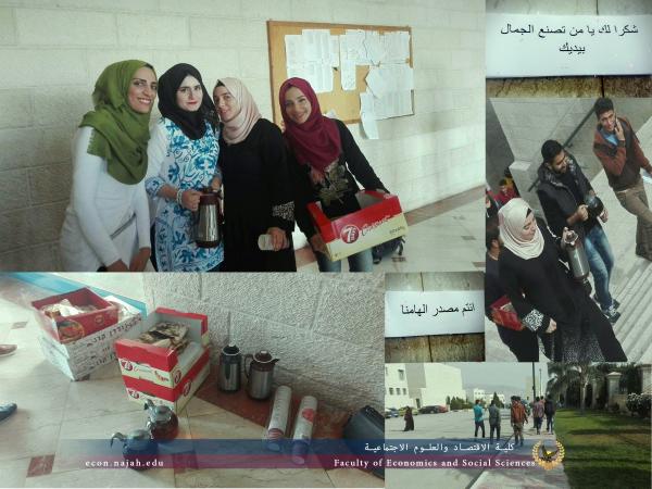 نظم طلبه مساق مهارات القيادة والاتصال عدة انشطة وزيارات لعدد من المؤسسات المجتمعية بتوجيهات من عميد كلية الاقتصاد والعلوم الاجتماعية الدكتور سائد الكوني ورئيس قسم ادارة الاعمال الدكتور نادر القريوتي ومدرس المساق سعيد حبايب تمثل بنشاط حمل عنوان كاسة شاي داخل اسوار الجامعة حيث وزع الطلبة كوب من الشاي الساخن للموظفي النظافة في الجامعة وموظفي الخدمات وعدد من افراد حرس الجامعة الذين نفتخر بهم مشددين على روح التعاون والتكامل بين الطلبة والموظفين كاسرة واحدة تعمل لبناء جيل قادر على العطاء رسالتة تقول نحن جسد واحد نشعر بشعور بعضنا بعضا حيث نال هذا النشاط استحسان العاملين مما ادخل البهجة ورسم ابتسامة على وجوههم مثمنين على اداء الطلبة ومدرسهم كما وزار الطلبة العيادة القانونية حيث اطلع القائمين على العيادة الطلبة على مهام عملها والتي تقدم خدماتها واستشارتها للمعنين حيث قدم الطلبة درع باسم الطلبة والمدرس من خلال منسقي الفريق الزائر من جهه اخرى زار الطلبة دار الايتام حيث قدم الطلبة فقرات ترفيهة للطلبة الايتام من خلال اشراكهم بفعاليات تركت اثرا ايجابيا على نفوسهم والتي تجسد معاني الاخاء والمحبة التي تعتبر الجامعة عنوانها والتي ترسي وتضع بصمتها في كل محفل من محالفل العمل المؤسساتي واستمرارا لرسالة المساق زار ايضا الطلبة جميعة الاهلال الاحمر حيث قدم فريق العمل نشاطا هدف من خلاله تعزيز اواصل روح العمل المشترك وعدم العمل بمعزل عن المجمتع بكافة اعماره واطيافة هذا وقد شكر المدرس القائمين على النشاط من طلبة ومسؤولين علها تكون البوصلة ونهج الذين نسير عليه التي رسمتها لنا الجامعة بقيادتها الحكيمة ممثلة برئيسها معالي الدكتور رامي الحمدالله رئيس الوزراء وسعادة الاستاذ الدكتور ماهر النتشه القائم باعمال رئيس الجامعة وكل العاملين مع حفظ الالقاب والمسميات هذا كله ياتي في سياق خطه المرسومه للمساق الهادفه الى كيفية التعامل مع الاخرين القائمة على تقبل الاخر وتفهم المجريات والحوار والشعور المتبادل من الاطراف الاخرى مؤسساتيا ومجتمعيا لتكون البذره التي تنموا وتكبر لنجني ثمارها جميعا لبناء دولتنا الفلسطينيه وعاصمتها القدس الشريف.