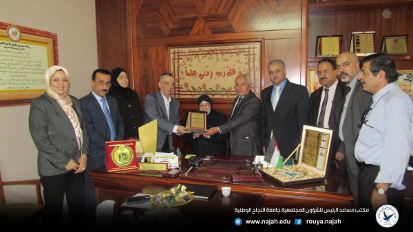 وفي ختام الزيارة قدمت كلن من ادارةالجامعة ونقابة العاملين فيها درعاً تقديرياً إلى إدارة مدارس طلائع الأمل تعبيراً وتقديراً للدور التربوي الذي تلعبه في المسيرة التعليمية في فلسطين.