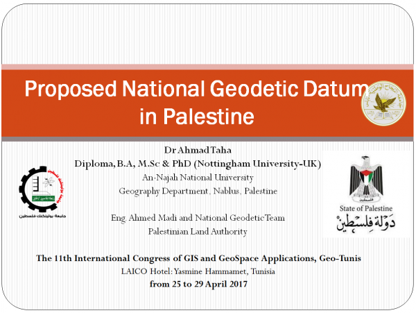 بين د. احمد طه في هذه الورقه العناصر المقترحه للشبكة الجيوديزيه الجديده في فلسطين ووضح ايضا الاخطاء الموجوده في الشبكة الجيوديزيه الحاليه والتي تم بناؤها فترة الانتداب البريطاني على فلسطين والتي قد تصل الاخطاء فيها الى 1 متر، وان الحل لهذه المشاكل هو بناء شبكة جديده باستخدام احدث التقنيات الحديثة وهي نظام GPS والذي يمكن استخدامه لتحديد المواقع بدقة تصل الى سنتمتر.