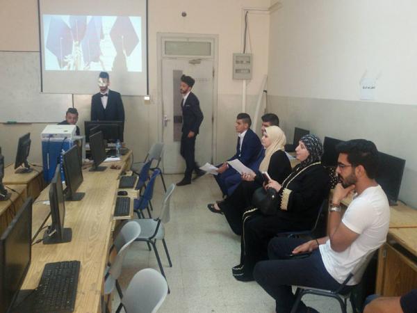 مناقشة مشاريع التخرج لقسم التسويق في مواضيع مختلفة وهامة جدا في مجالات متعددة. حيث شارك عميد كلية الاقتصاد والعلوم الاجتماعية في مناقشة الطلبة بالاضافة الى لجنة المناقشة المكونة من رئيس قسم التسويق أ.معروف دويكات ،د.اسلام عبد الجواد مدرس المساق، د.سام فقهاء، أ.ناجح عبد القادر.
