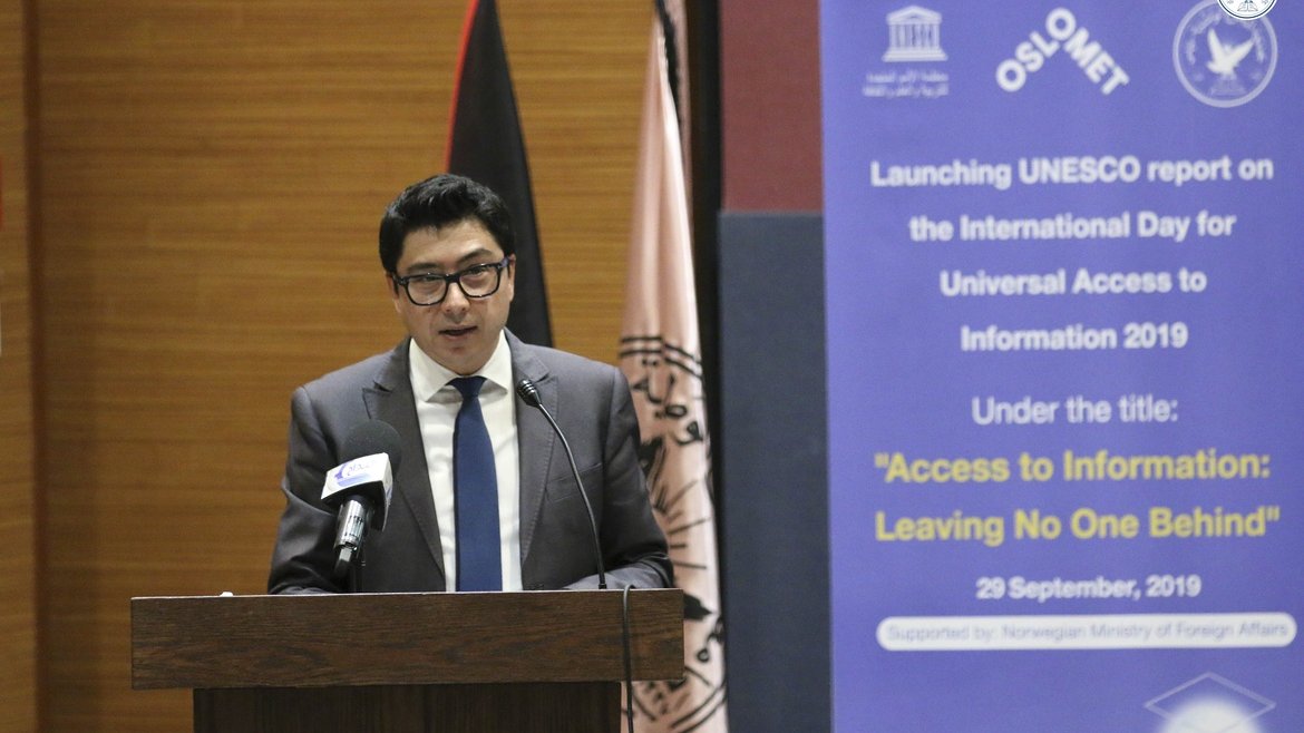 وأعلن عن إطلاق تقرير اليونسكو في اليوم الدولي لتعميم الإنتفاع بالمعلومات لعام 2019 بنسخته العربية تحت عنوان "الإنتفاع بالمعلومات: عدم ترك أحد خلف الركب" خلال فعالية عقدت في مدرج كلية القانون في الحرم الجامعي الجديد.