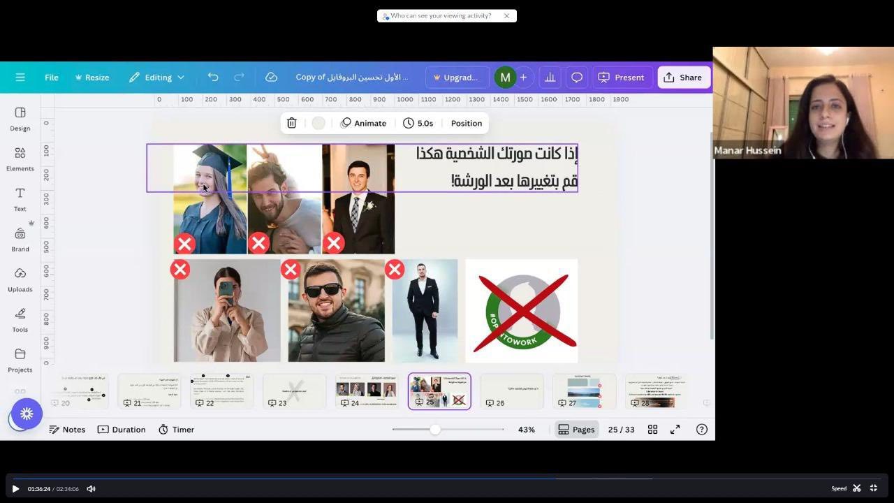 قدّمتها صانعة المحتوى أ. منار أبو نعمة، المتخصصة في بناء العلامة الشخصية على LinkedIn، وذلك عبر منصة Zoom.